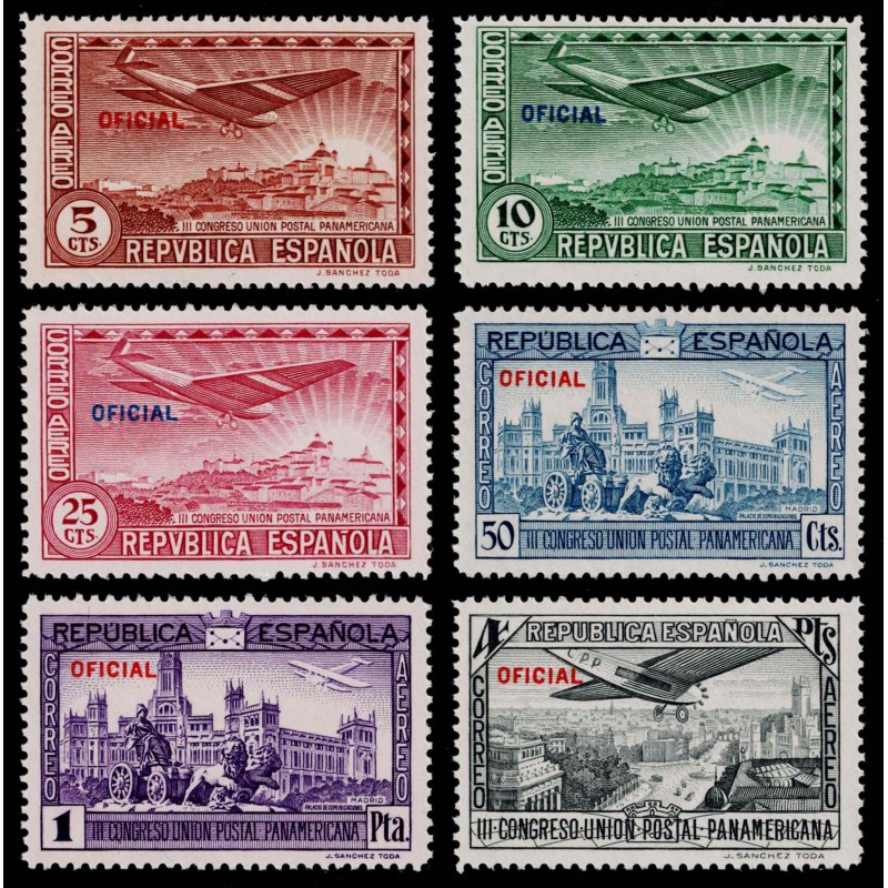 III Panamerican Post-congress in Madrid. Air Mail with "OFICIAL" overprint.
