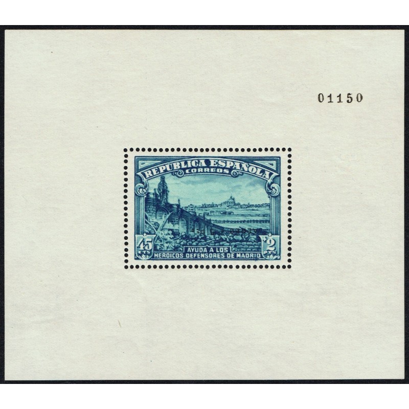 For the defense of Madrid. Air mail. Souvenir sheet.
