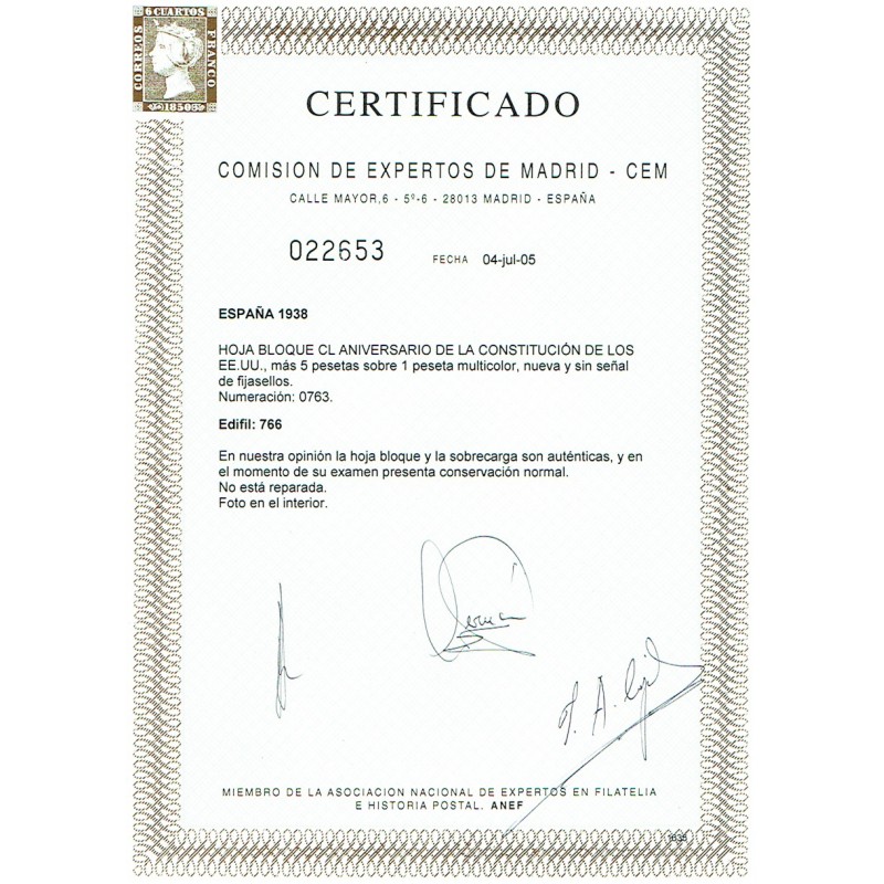 150th anniversary of the Constitution of North America. Air Mail. Souvenir sheet.