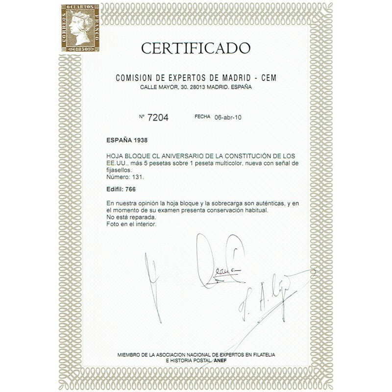 150th anniversary of the Constitution of North America. Air Mail. Souvenir sheet.