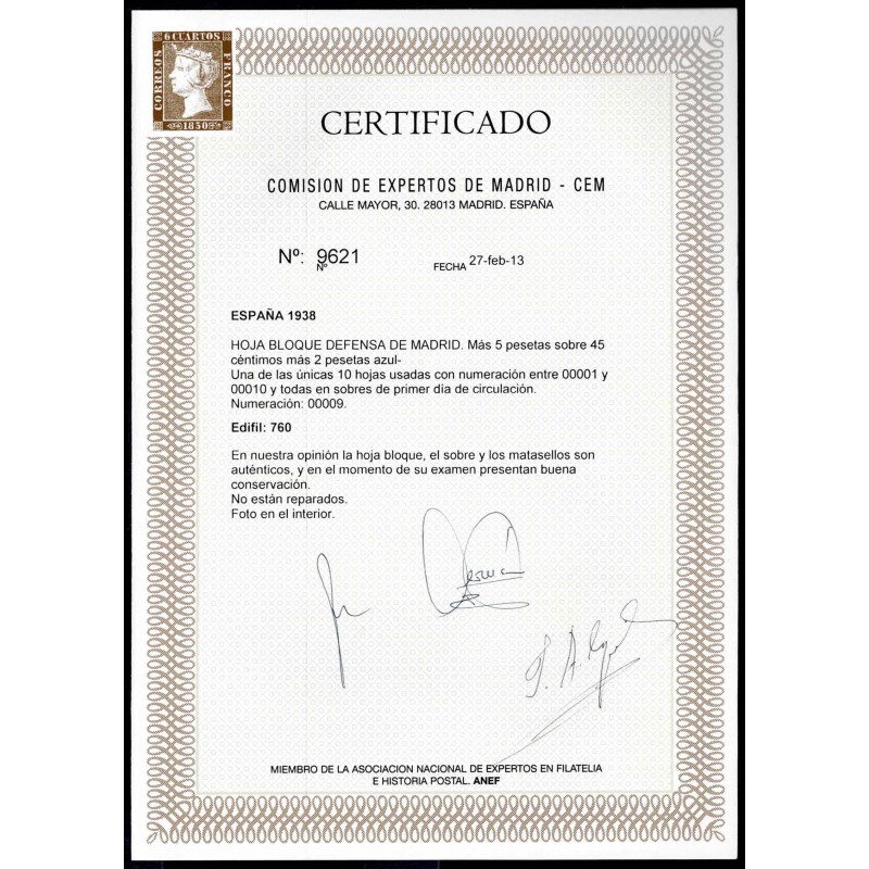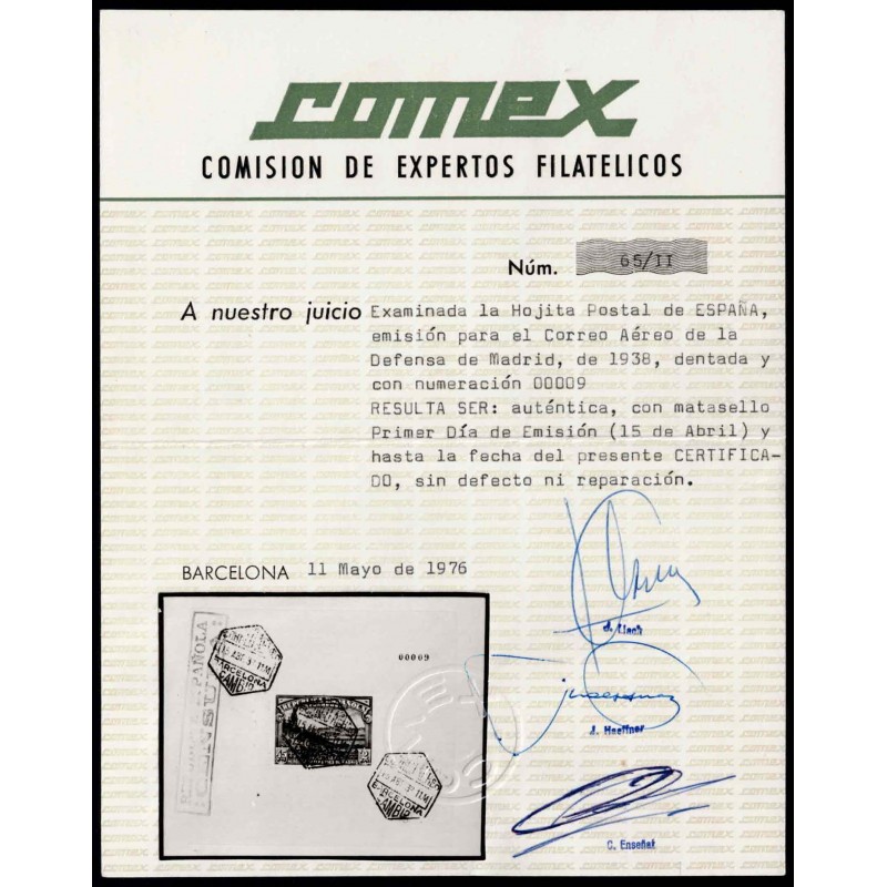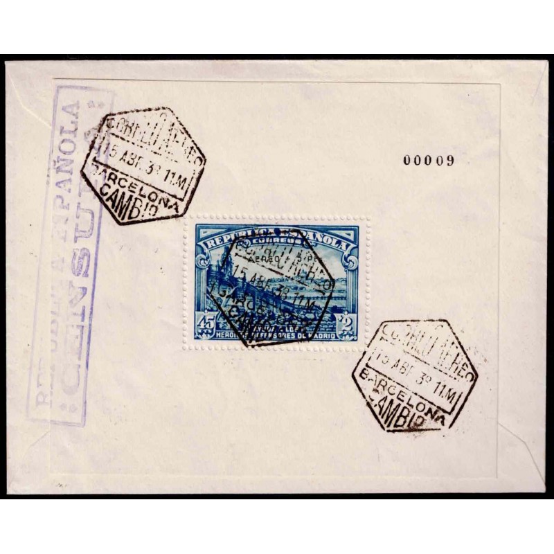 For the defense of Madrid. Air mail. Souvenir sheet.