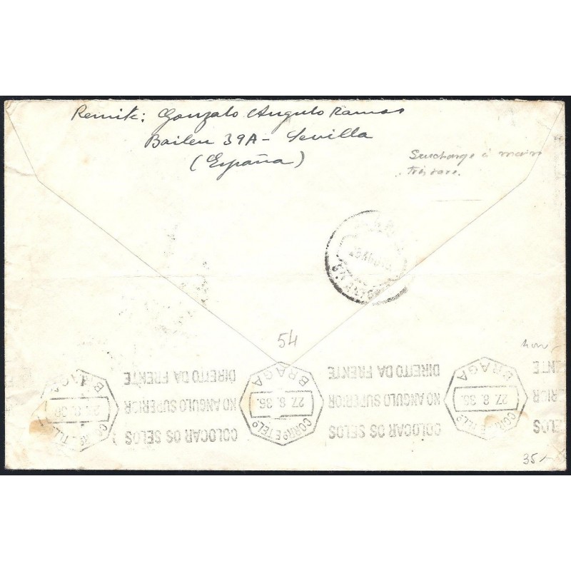 Republican overprinted Stamps. 1936 Seville-Braga (Portugal).