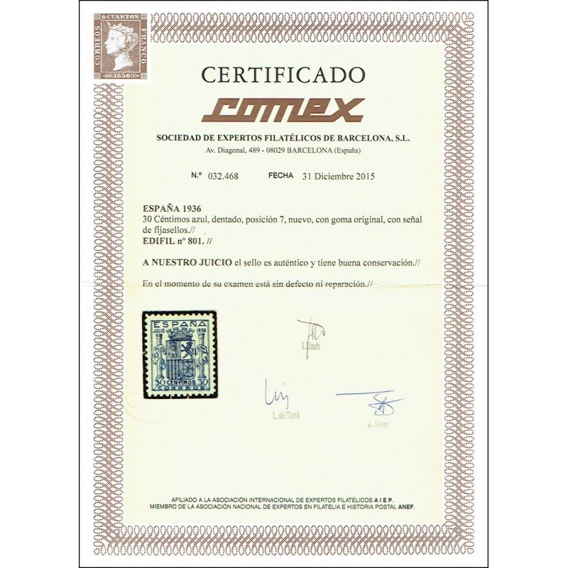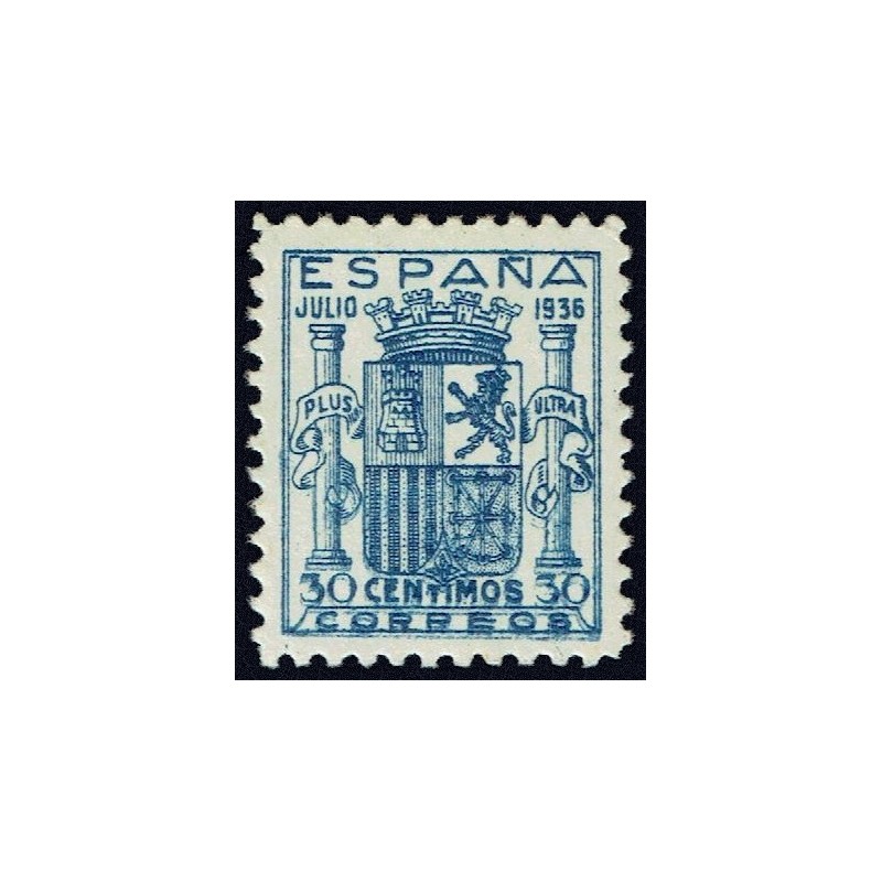 Spanish coat of arms between columns with text bands. Emission of Granada.