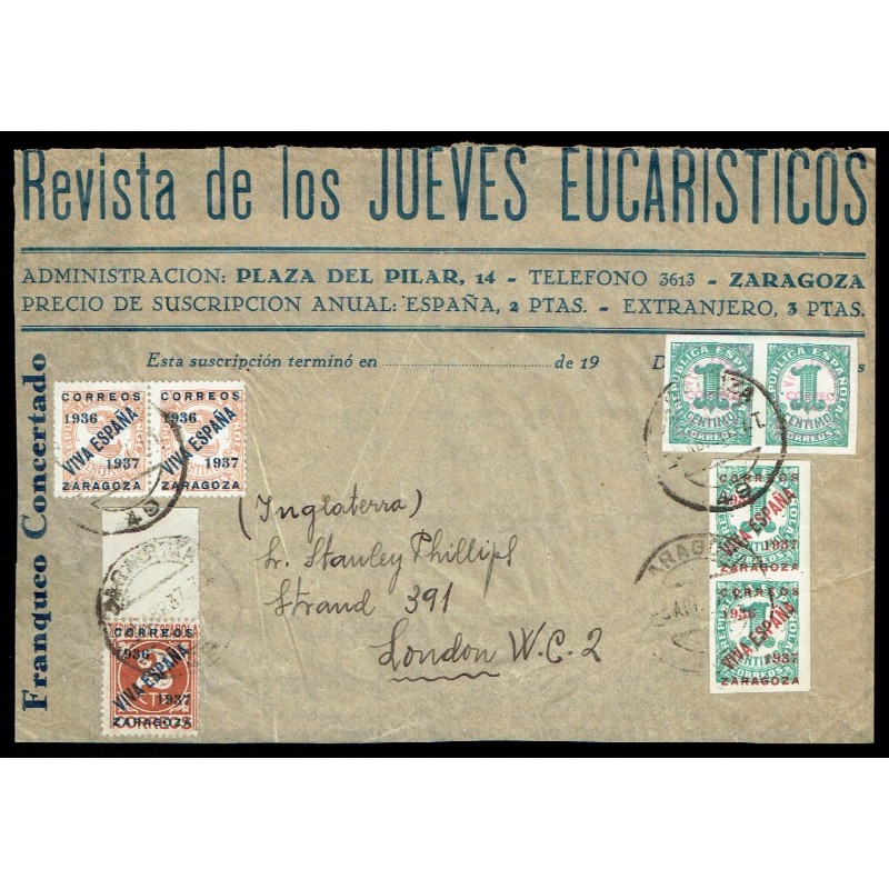 Republican overprinted Stamps. 1937 Saragossa-London (England).