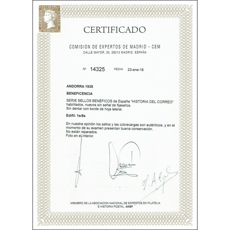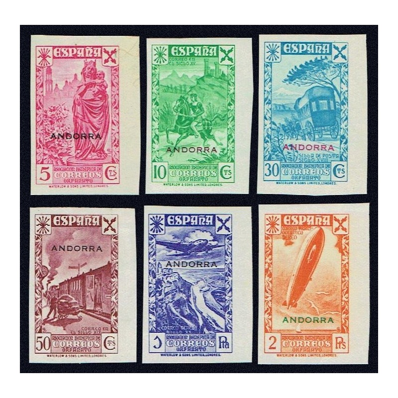Historia del Correo habilitados. Preciosa serie completa sin dentar con borde de hoja lateral presenta amplios márgenes. No catalogada sin señal de fijasellos. Lujo. Certificado C.E.M.