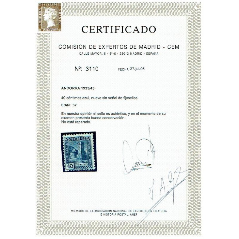 Paisajes de Andorra. Bonito ejemplar presenta color intenso y el centraje habitual de la emisión. Certificado C.E.M.