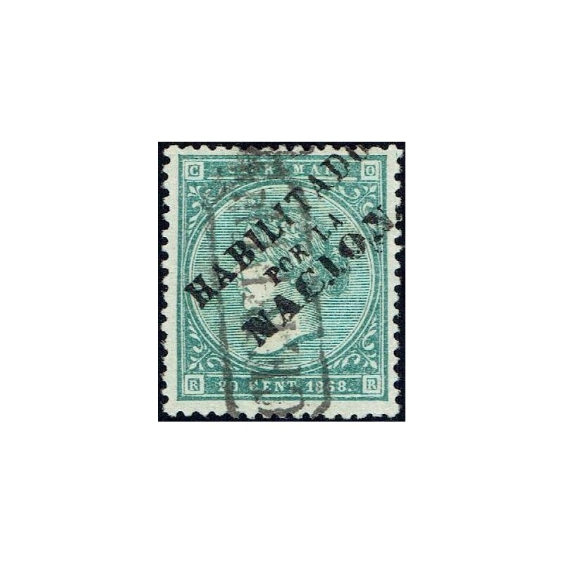 Isabel II. Habilitados por la Nación. Precioso ejemplar usado presenta magnífico color y centraje. Gran lujo.