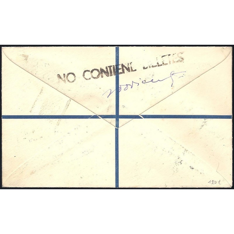 Sello fiscal y republicano sobrecargados. Correo aéreo certificado circulado de Pontevedra a Londres (Inglaterra) el 20 de Julio de 1937. Franqueada con un 90c. timbre para efectos de comercio y un 2 Ptas. Autogiro Tipo I. Matasellada con fechadores de origen y marca de "Censura Militar Pontevedra".