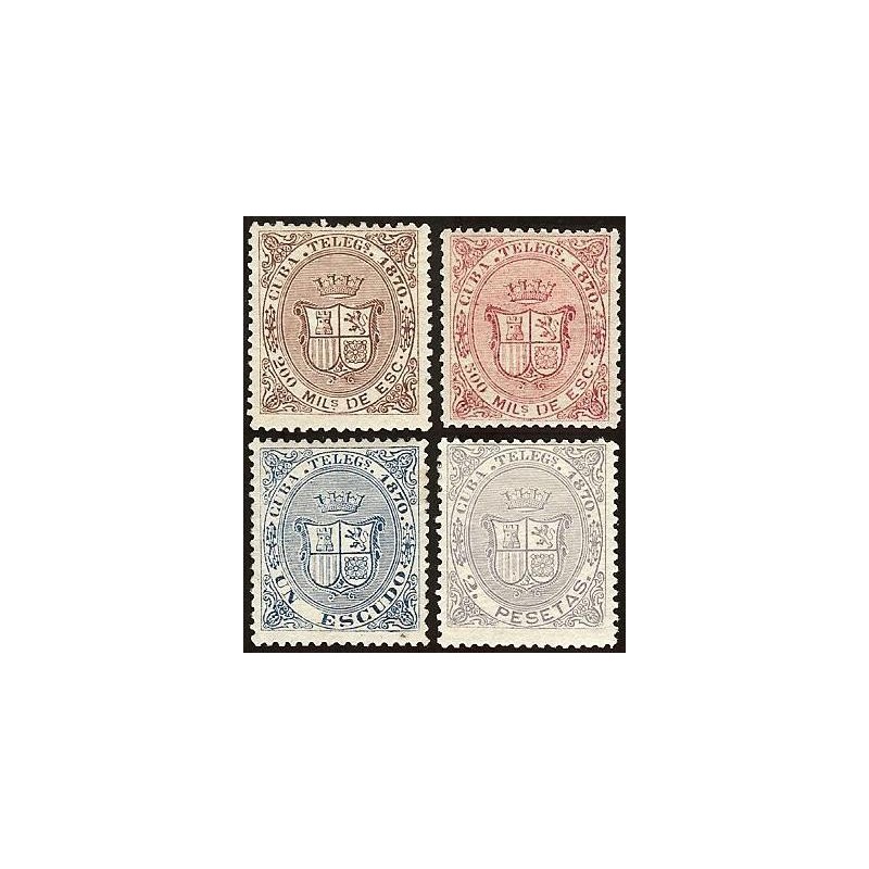 Escudo de España. Corona mural. Muy rara serie completa presenta colores frescos y buenos centrajes.