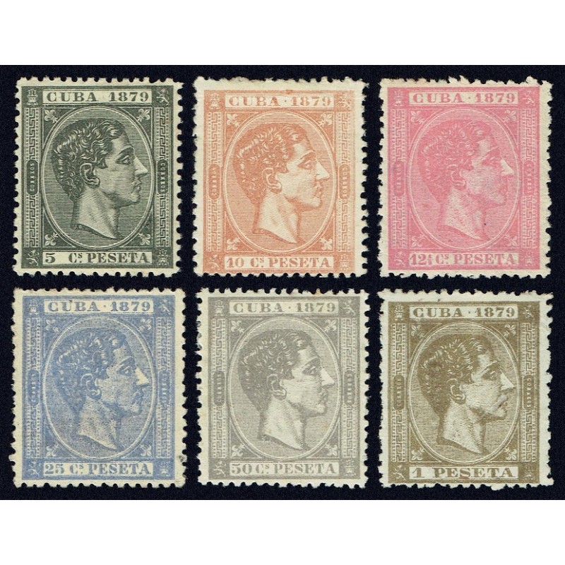 Alfonso XII con leyenda "CUBA 1879". Muy rara serie completa.