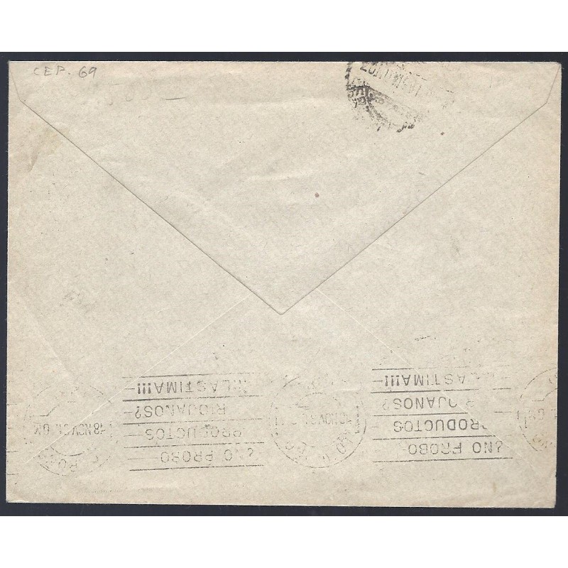República Española. Sello tipo Vaquer, con habilitación "República Española". Sobre 5c. castaño violeta con habilitación negra. M. GÁLVEZ. Príncipe, 1. Madrid. Circulada de Logroño a Madrid. Matasellada con fechadores de origen del 18 de Noviembre de 1931 y de llegada el día 20. Número de Catálogo Especializado Laiz 927.