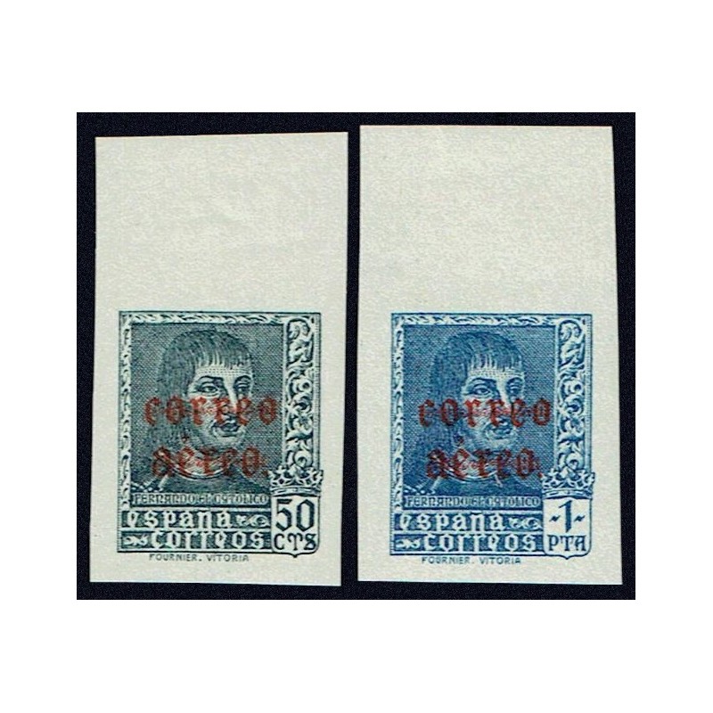 Fernando el Católico Correo aéreo. Preciosa serie completa sin dentar presenta amplios márgenes y borde de hoja superior.