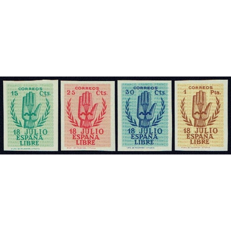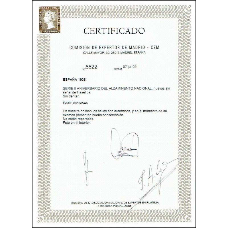 II Aniversario del Alzamiento Nacional. Preciosa serie completa sin dentar. Lujo. Certificado C.E.M.