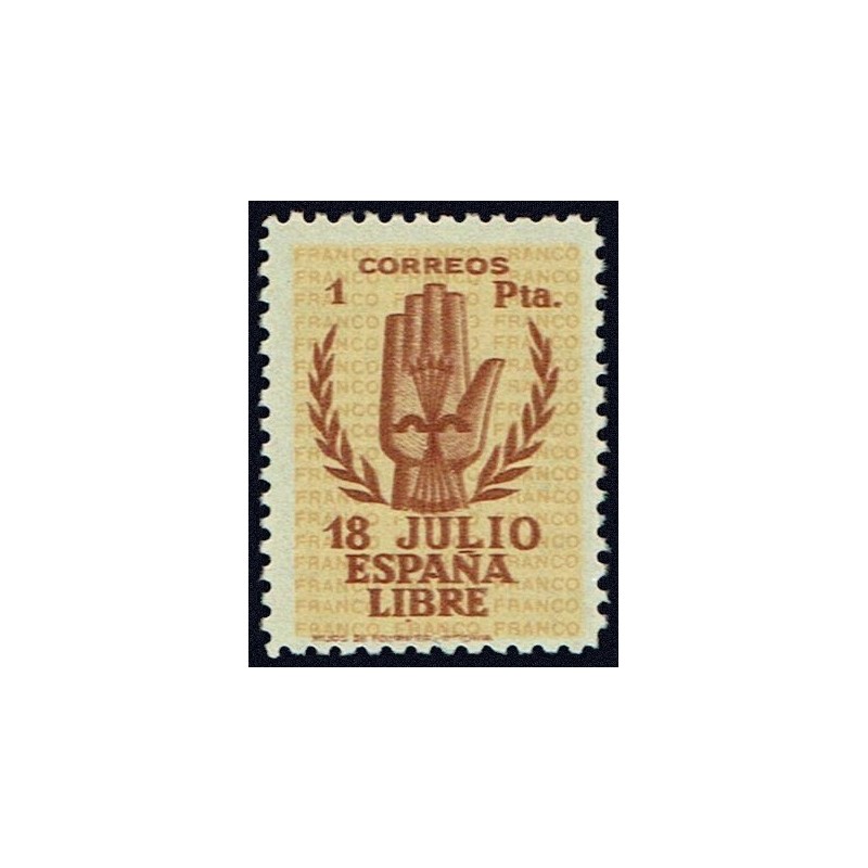 II Aniversario del Alzamiento Nacional. Precioso ejemplar con error de impresión doble. No catalogado sin señal de fijasellos.