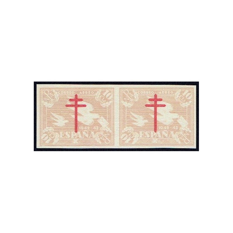 Pro Tuberculosos 1942. Rarísima pareja horizontal sin dentar del valor clave de la serie.