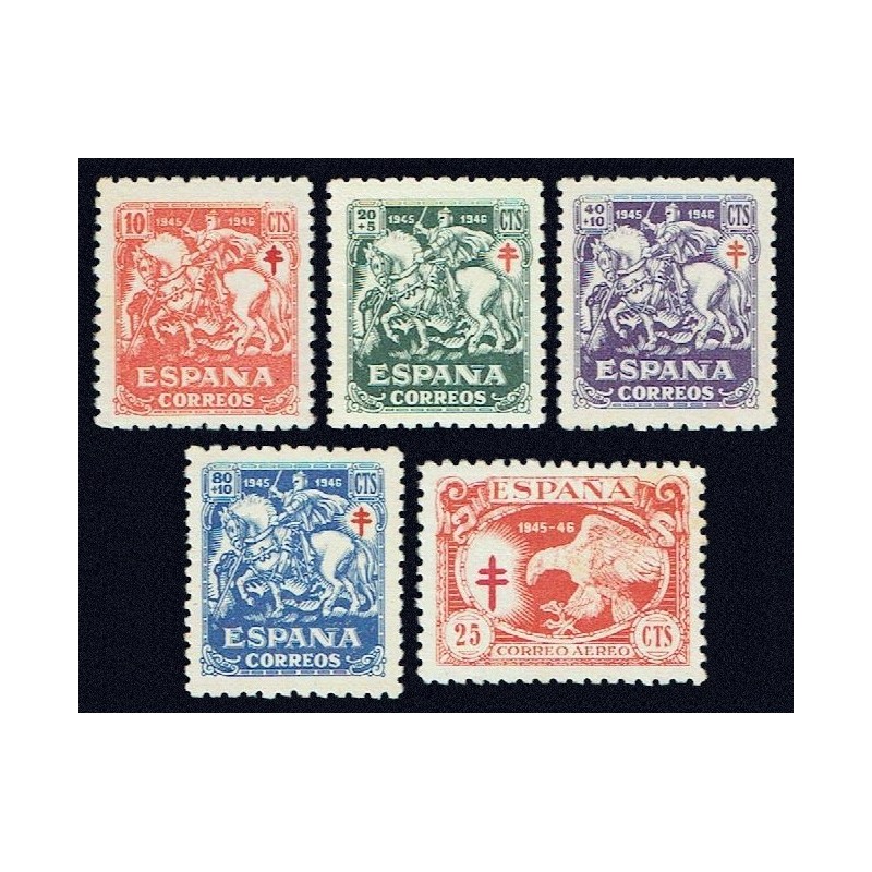 Pro Tuberculosos 1945. Preciosa serie completa muestra con numeración A.000.000 en el reverso.
