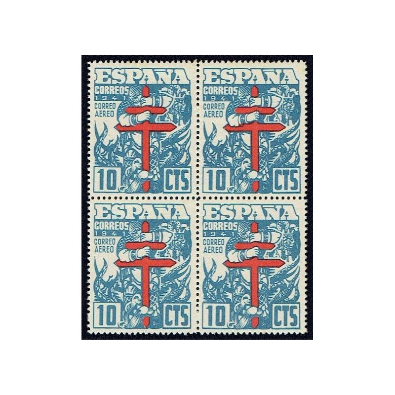 Pro Tuberculosos 1941. Precioso bloque de 4 variedad de perforación dentado 14, de línea. No catalogada sin señal de fijasellos.
