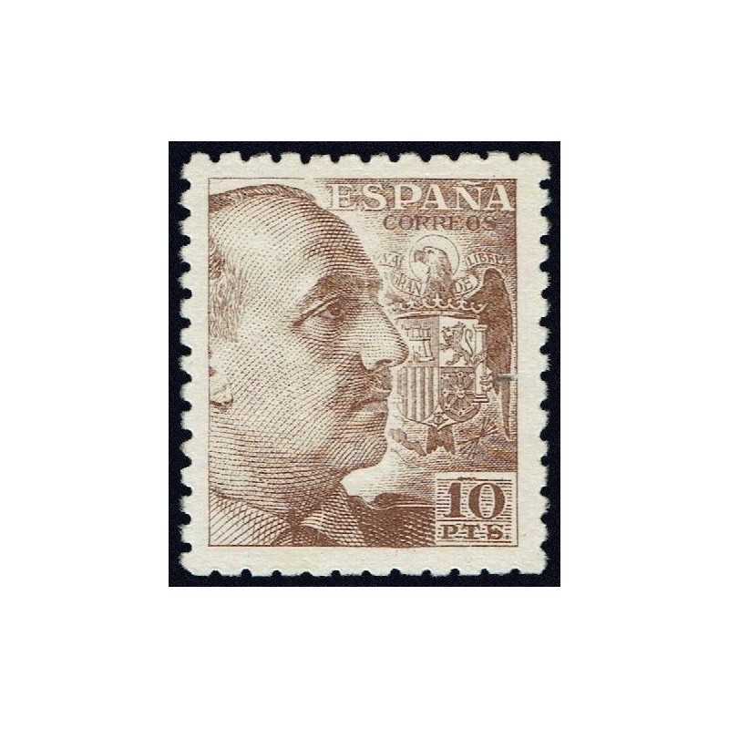 General Franco y escudo de España. Precioso ejemplar valor clave de la serie con señal de fijasellos.