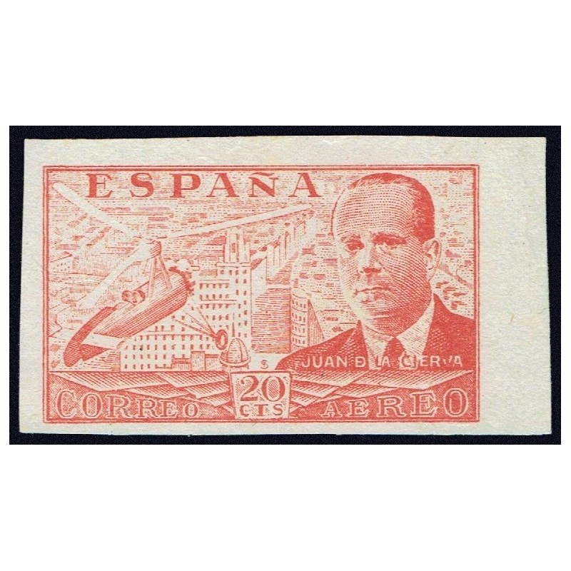 Juan de la Cierva (II). Correo aéreo. Muy raro ejemplar sin dentar y sin goma presenta borde de hoja lateral.