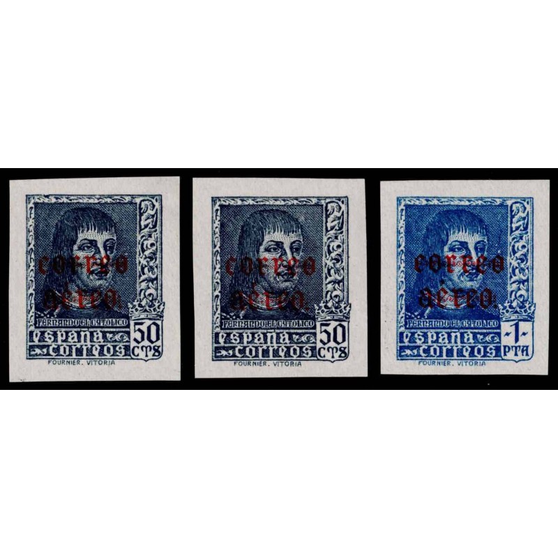Fernando el Católico Correo aéreo. Preciosa serie muy completa sin dentar incluyendo el ED. 845as con la habilitación en color carmín presenta amplios márgenes.