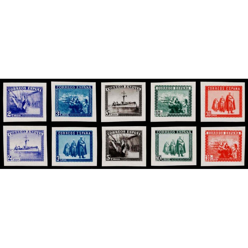 Homenaje al Ejército y la Marina. Serie completa sin dentar procedente de la hoja bloque con señal de fijasellos en calidad habitual FILATELIA HOBBY, muy similar a la mostrada en esta imagen genérica.