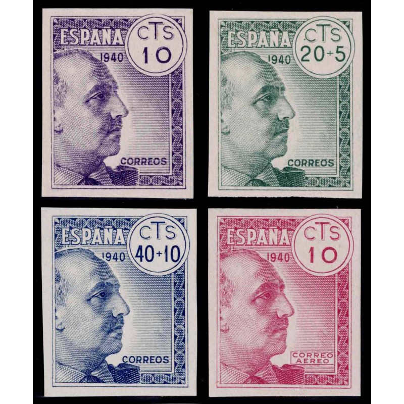 Pro Tuberculosos 1940. Muy rara serie completa error de impresión por falta de la Cruz de Lorena sin dentar presenta amplios márgenes. Lujo. Certificado C.E.M.