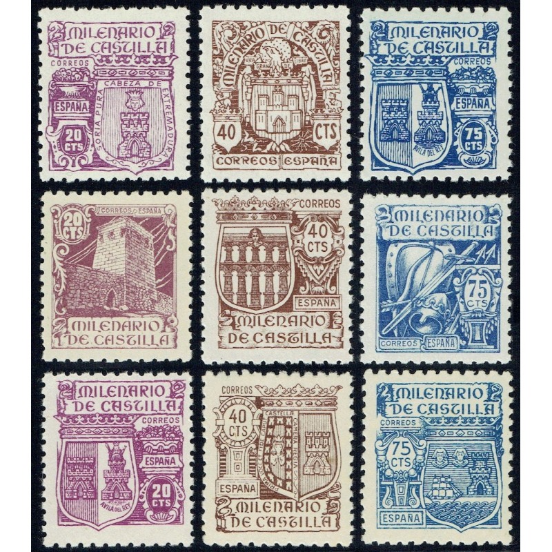 Milenario de Castilla. Serie completa sin señal de fijasellos en calidad habitual FILATELIA HOBBY, muy similar a la mostrada en esta imagen genérica.