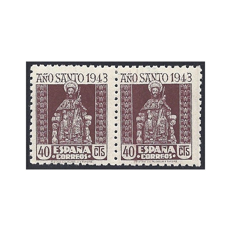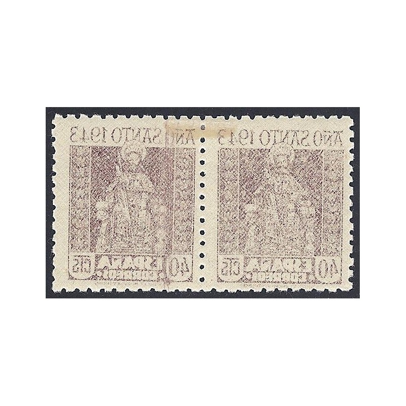 Año Santo Compostelano. Preciosa pareja horizontal variedad con impresión calcada al reverso presenta señal de fijasellos. No catalogado.