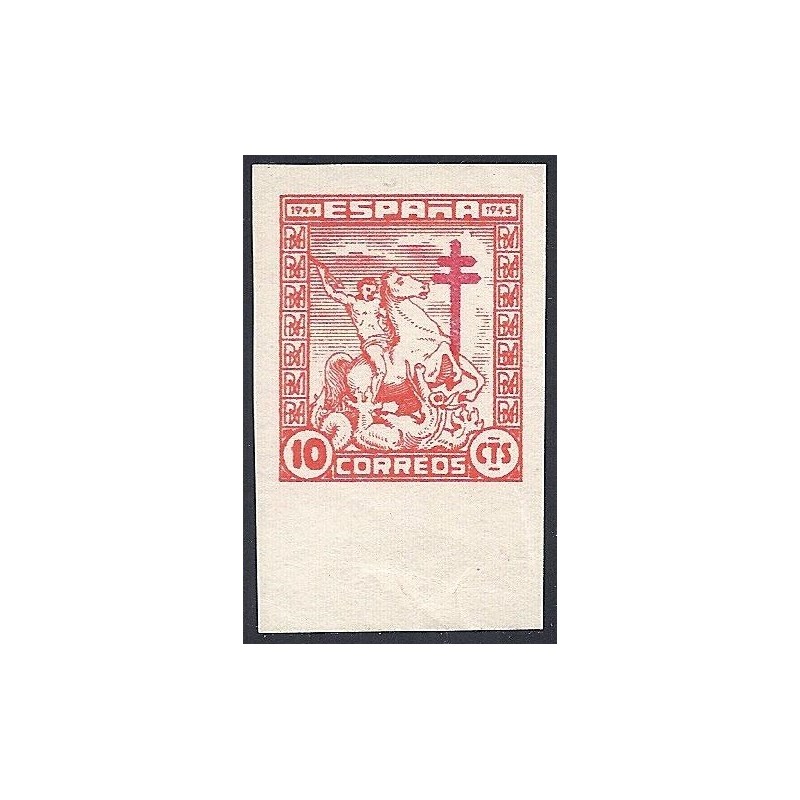 Pro Tuberculosos 1944. Precioso ejemplar sin dentar presenta amplios márgenes y borde de hoja inferior. No catalogado sin goma.