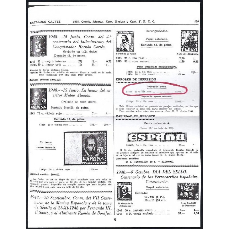 Fernando III el Santo y Almirante Bonifaz. Muy raro error de impresión doble. Sólo existen 20 ejemplares (Se adjunta información del catálogo Gálvez). No catalogado sin señal de fijasellos.