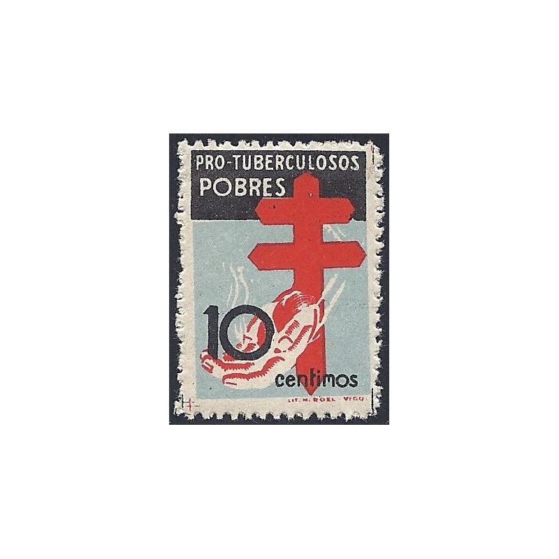 Pro Tuberculosos 1937. Precioso ejemplar negro, azul celeste y carmín.