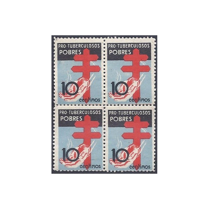 Pro Tuberculosos 1937. Precioso bloque de 4 negro, azul celeste y carmín.