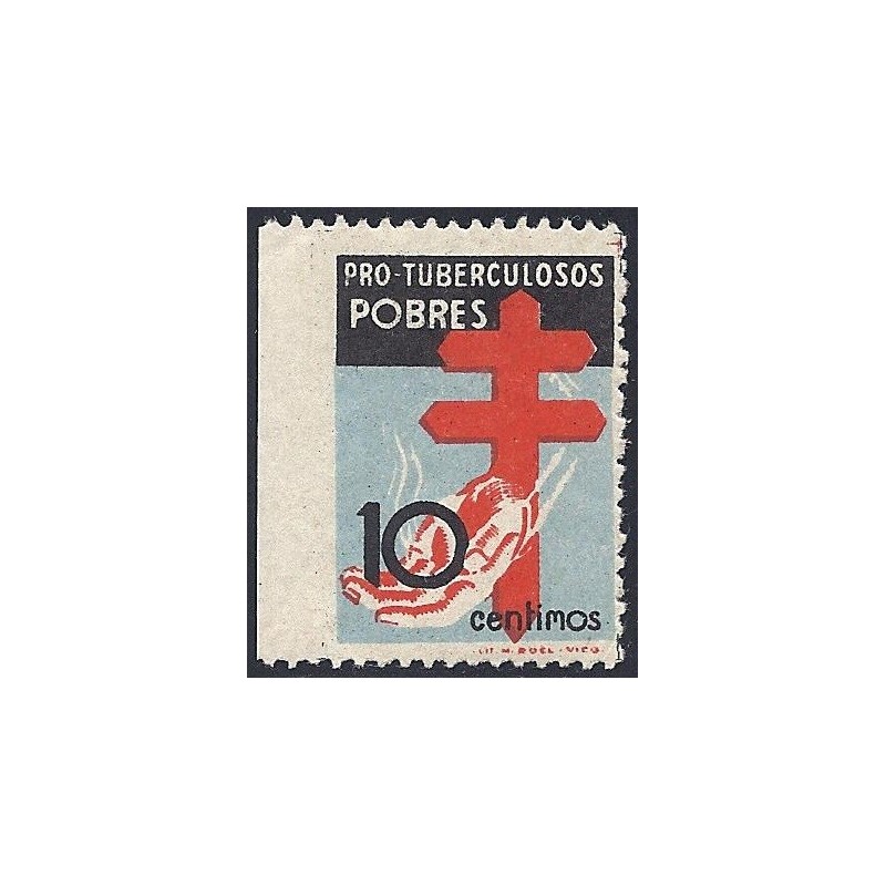 Pro Tuberculosos 1937. Preciosa variedad de perforación sin dentar el margen izquierdo. No catalogada.