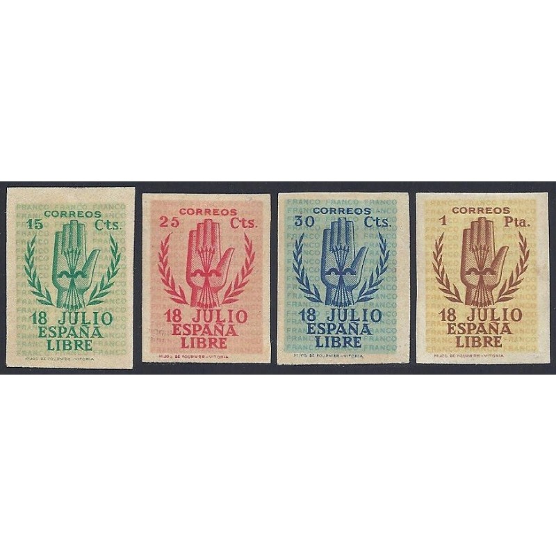 II Aniversario del Alzamiento Nacional. Bonita serie completa sin dentar presenta señal de fijasellos.