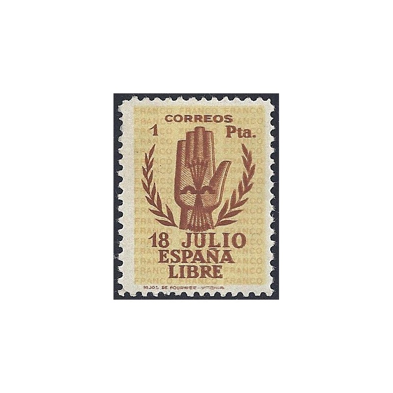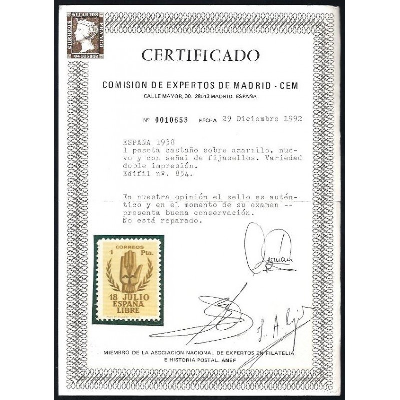 II Aniversario del Alzamiento Nacional. Precioso ejemplar con error de impresión doble. Raro. Lujo. Certificado C.E.M.