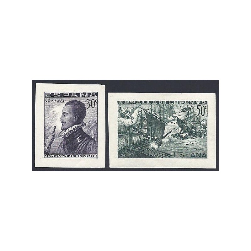Batalla de Lepanto. Preciosa serie completa de valores procedentes de la hojita bloque presenta señal de fijasellos.