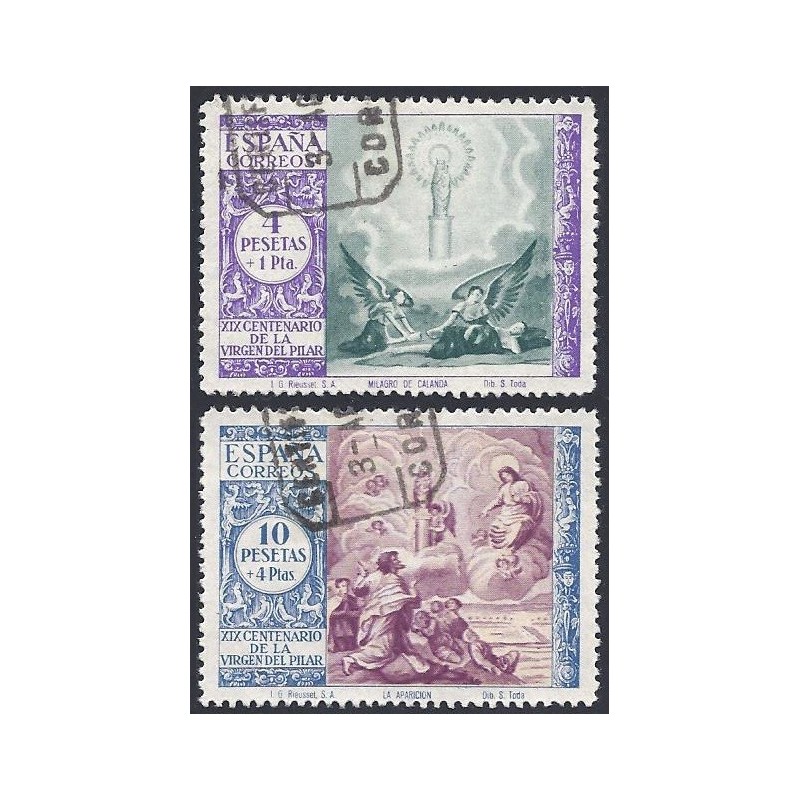 XIX Centenario de la venida de la Virgen del Pilar a Zaragoza. Preciosas variedades con colores cambiados usados. No catalogados en usados. Tirada de 1.000 ejemplares de cada uno.