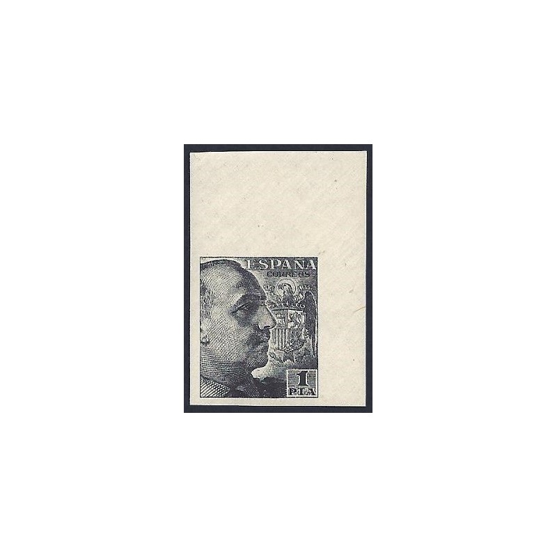 General Franco y escudo de España. Raro ejemplar sin dentar con doble impresión presenta esquina de pliego superior. No catalogado sin señal de fijasellos.
