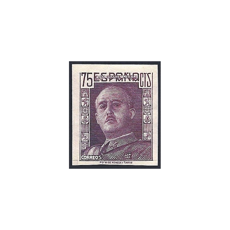 General Franco, de frente. Rarísimo cambio de color violeta oscuro sin dentar presenta buenos márgenes. No catalogado.
