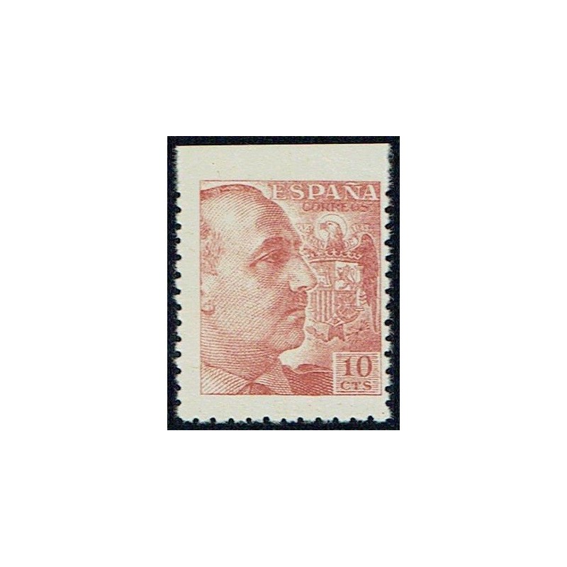 General Franco y escudo de España. Preciosa variedad de perforación sin dentar en el margen superior. No catalogada sin señal de fijasellos.