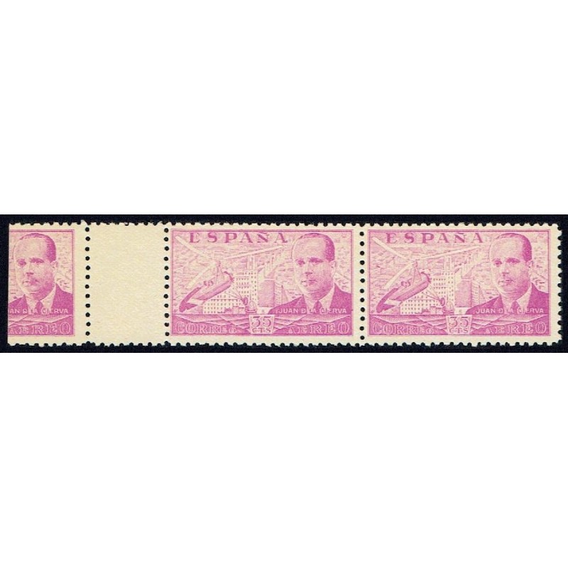 Juan de la Cierva (II). Correo aéreo. Preciosa tira horizontal con interpanel entre las dos efigies. Muy Rara.