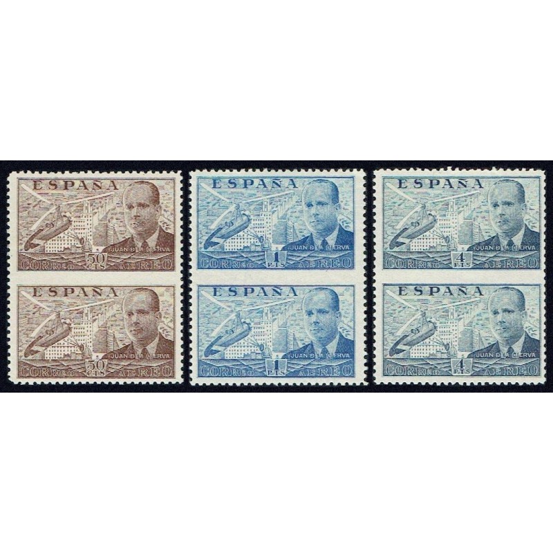 Juan de la Cierva (I). Correo aéreo. Precioso juego completo de parejas verticales variedad de perforación sin dentado central. No catalogado sin señal de fijasellos. Muy Raro.