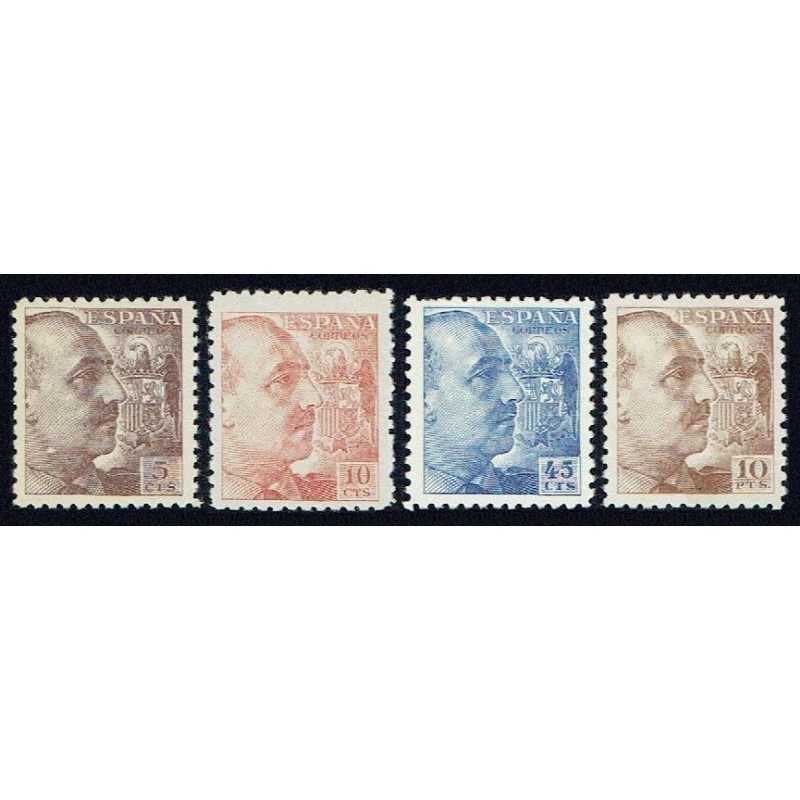 General Franco y escudo de España. Precioso juego completo variedad de perforación dentado 10, de línea. Raro.