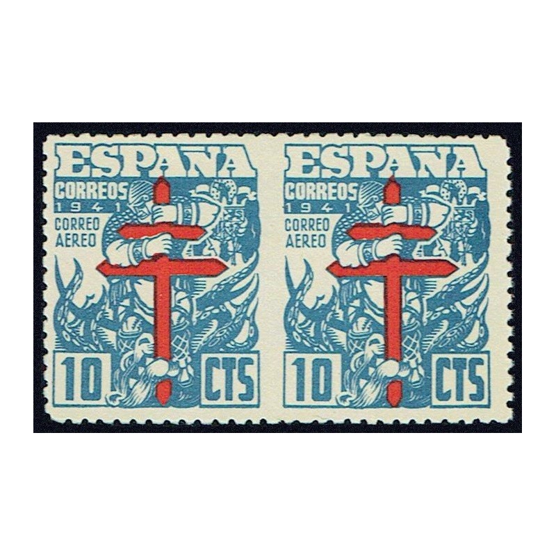 Pro Tuberculosos 1941. Preciosa pareja horizontal variedad de perforación sin dentar entre los sellos. No catalogada sin señal de fijasellos. Muy Rara.