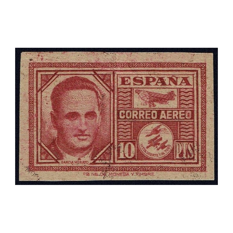Carlos Haya González y Joaquín García Morato. Correo aéreo. Precioso ejemplar sin dentar con variedad de papel crema presenta buenos márgenes. No catalogada.