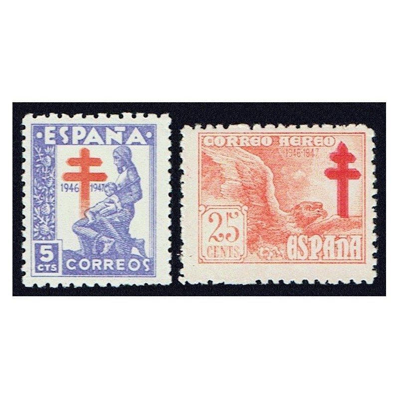 Pro Tuberculosos 1946. Preciosa pareja con error de impresión doble de la Cruz de Lorena. Rara.