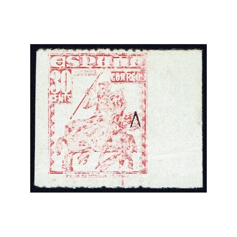 Fernando III el Santo y Almirante Bonifaz. Preciosa variedad de impresión muy ligera y dentado vertical desplazado presenta borde de hoja y señal de fijasellos. No catalogada.