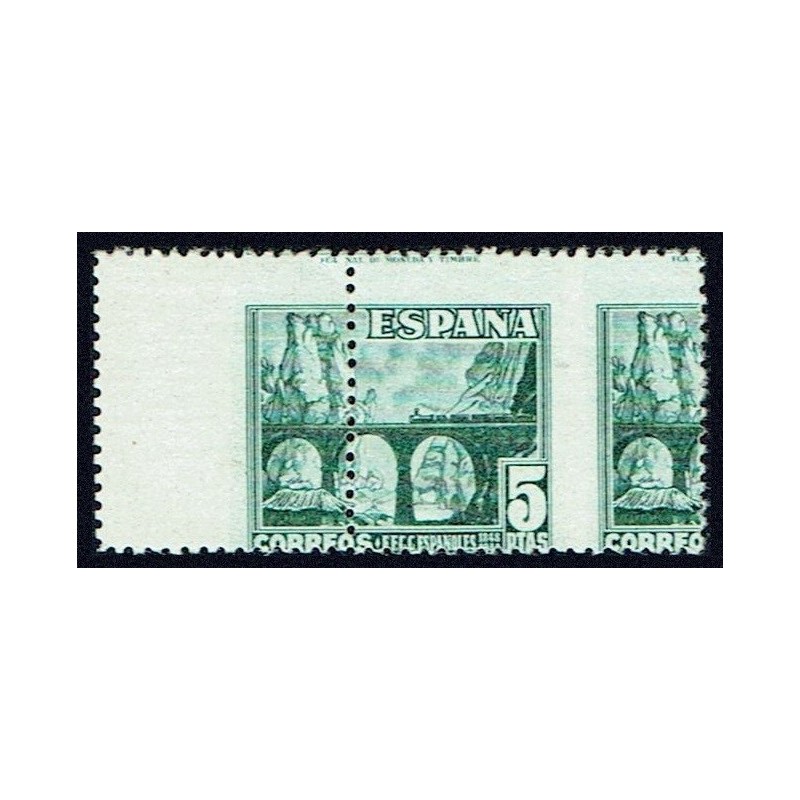 Centenario del Ferrocarril. Rarísima pareja horizontal variedad de perforación con el dentado vertical muy desplazado. No catalogada sin señal de fijasellos.