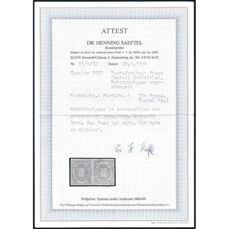 Alegoría postal. Bonita pareja horizontal variedad de impresión con un sello invertido. Cetificado Saeftel.