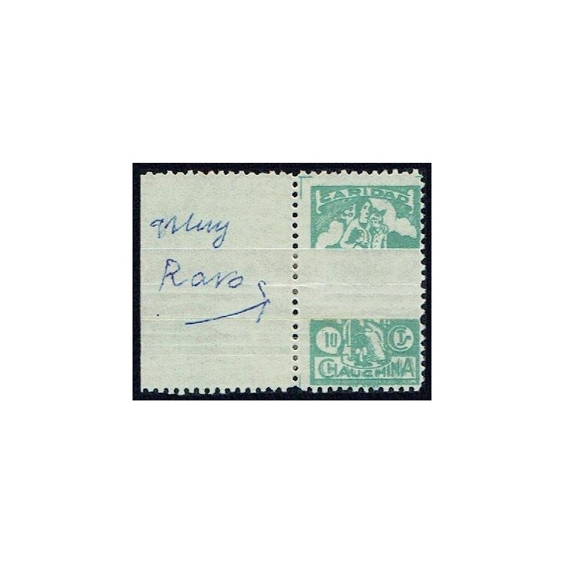 Caridad. Granada. Preciosa variedad del 10 cts. verde azulado con un gran fuelle horizontal y borde de hoja lateral. No catalogada. Muy Rara.